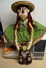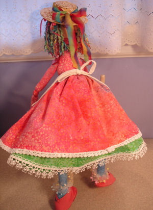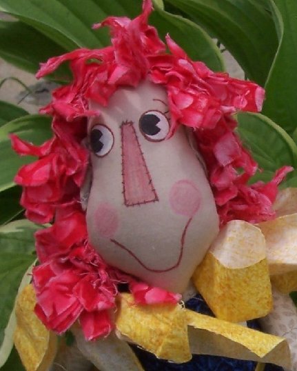 Party Annie is all dressed up in her best party dress. Her hair is made of curling