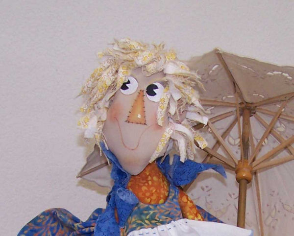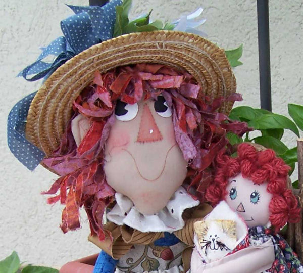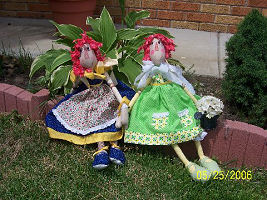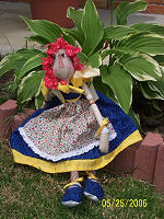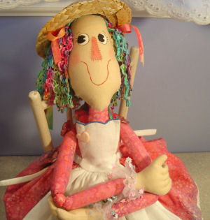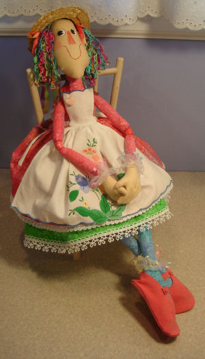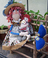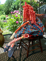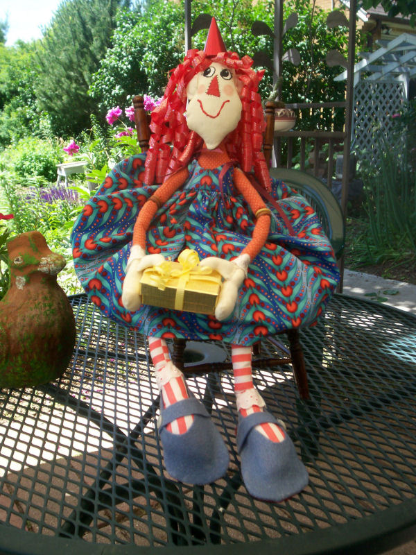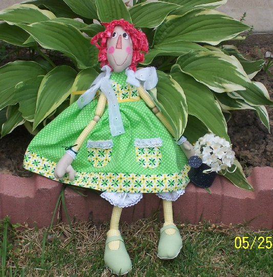 She is made of modern fabrics. I used bright and cheery colors. I made 2 dolls