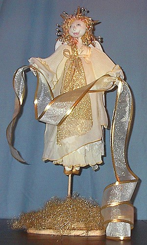 Brocade, laces and beads combine to form this graceful 27" angel.