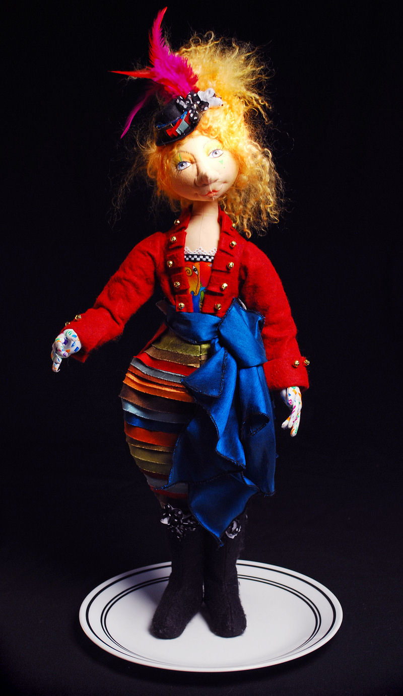 This girl starts like Barbara's Queen Anne doll but then takes a turn to the left! She still has an element of the historical but now it's the 60's, the 1960s. She is fun and a bit silly. An intermediate skill level in sewing and doll making would be helpful but not necessary.